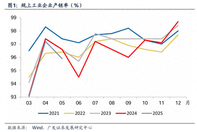 5月产销率为95.9%,低于前值的97.2%;同比下降0.8个点,较前值的下降0.2个点降幅扩大。